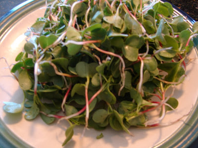 Believe it or not, there are veggies you can harvest this early in the season. Lettuce, Beets and Radishes all should be thinned to allow them to reach their full maturity. To do that, you pluck out some of the seedlings when they are very small (these radish thinnings are less than an inch tall). But, don't throw them out. Wash your thinnings well because the white and red parts were underground. Then, dress them with some oil and vinegar like a regular salad. The taste is a very, very mild radish flavor. You can do the same with beet seedlings, lettuce seedlings, basil seedlings and arugula seedlings. After you enjoy your salad of micro greens, check out the price of a container of micro greens at the grocery store. You'll never throw out your thinnings again!